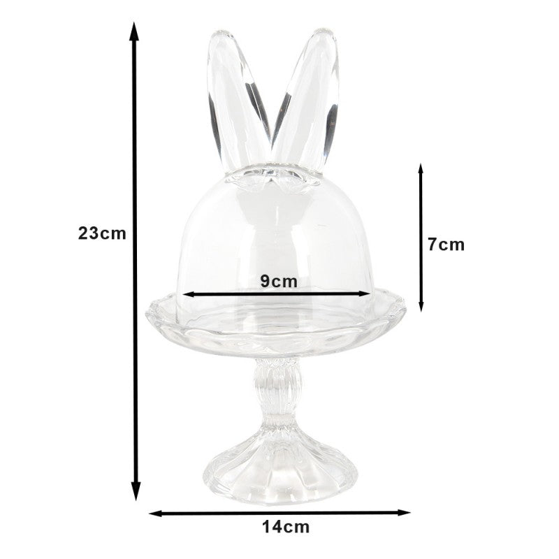 Glazen stolp op voet met konijnenoren welke past in elk interieur.