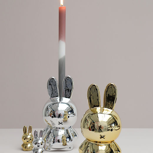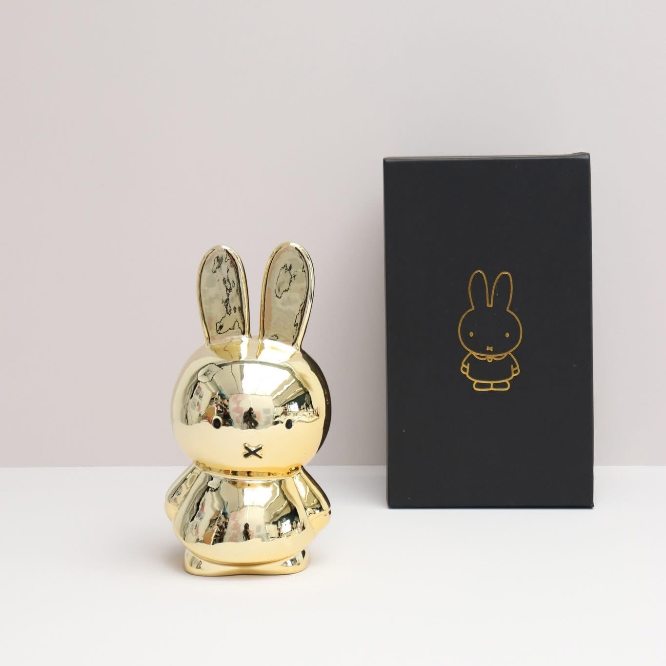 Grote porseleinen kandelaar van nijntje in goud, 25 cm.