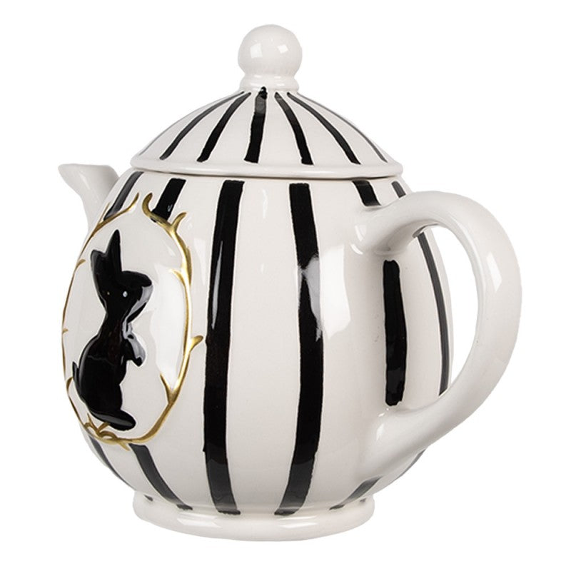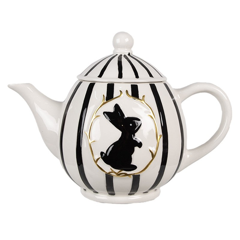 Een prachtige zwart-witte theepot met een schattige konijnenafbeelding. Staat mooi op een dienblad of tafel en is een leuk cadeau-idee voor Pasen. Combineer met andere items uit deze serie.