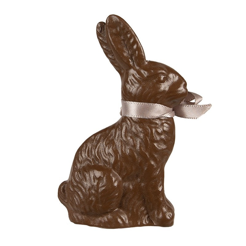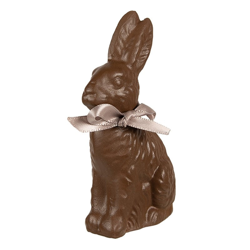 Mooi decoratief beeld van een bruin konijn met een roze strik. Leuk ter decoratie tijdens Pasen.